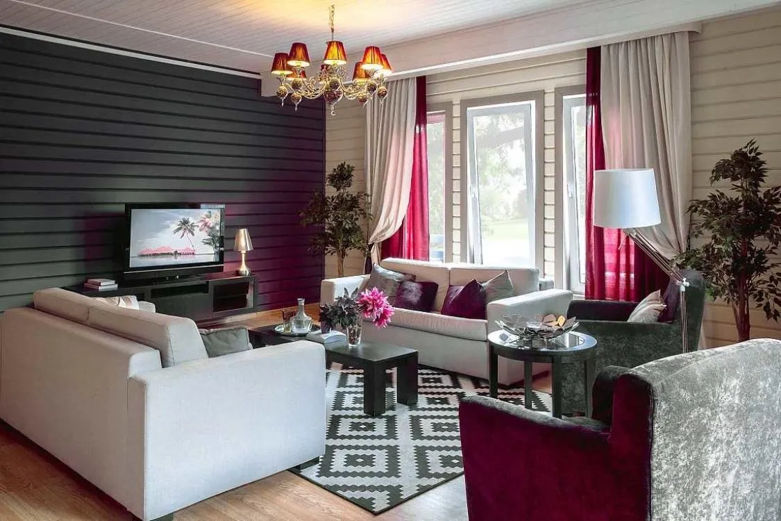 Красивый просторный дом идеален для загородной жизни большой семьи и приема гостей. Этому способствует наличие гостевой комнаты, нескольких изолированных спален,а также просторных помещений холла, гостиной и кухни-столовой. Из кухни есть выход на огромную террасу, где можно устраивать большие застолья и дружеские вечеринки.